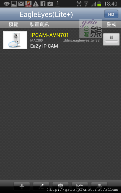 買新車要去試車,設定完成的AVN701EZ當然也要馬上試試。執行EagleEyes(Lite+),一進去就看到IPCAM-AVN701的身影,選他進入。