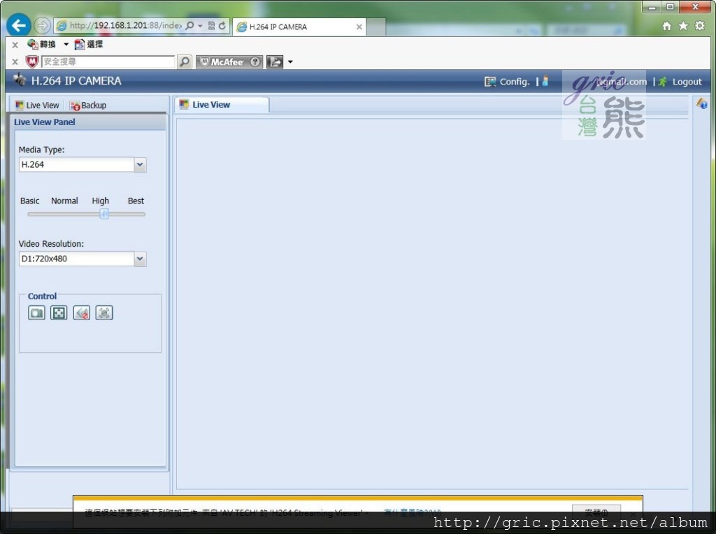 圖 A52-A55 哎呀!IP CAMERA (FIXED) AVN701…就活跳跳的在這裡,點他兩下就出現登錄Customer Login畫面,一豋入後還很自動的偵測與詢問要不要安裝H264 Streaming Viewer,把缺的條件都補齊 。