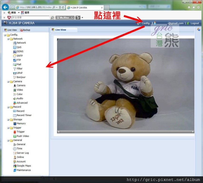 在PC的操作畫面,除了有登入人的帳號與Logout按鈕之外,還有一個Config,好奇的熊怎可能不點。