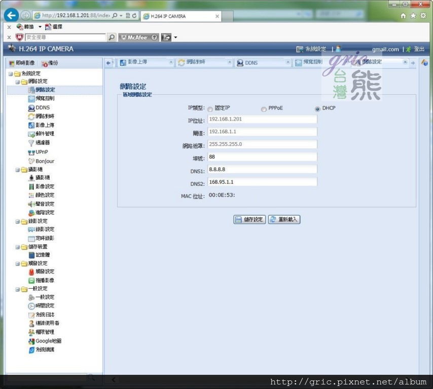 圖 A69-A73 重要的網路設定,包括固定IP與PPPOE,有些網路供應商像是SEEDNET可以選DHCP加一個固定IP,這時候利用PPPOE輸入帳號+!號,就可以把固定IP指定給AVN701EZ使用,這樣對由外面要連回家裡會是公司監看會很方便。當然像現在熊測試的是DHCP,也可以透過DDNS的支援完成由外面連回來監看的功能,這是沒問題的。
