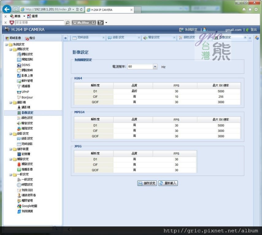 視訊格式:H.264 / MPEG4 / MJPEG
