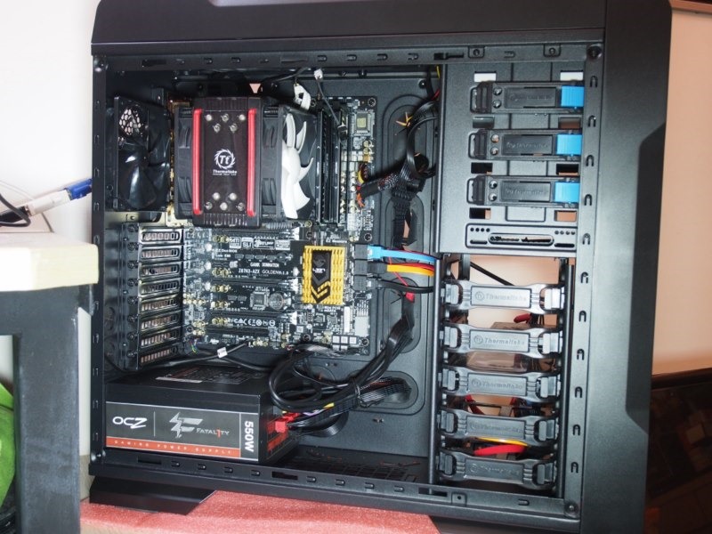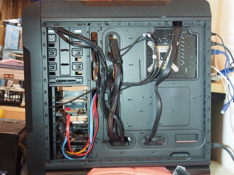 整個開箱與實際安裝的過程,因為ThermalTake Chasar A71本身空間就是比較大,所以順利與快速。裝完後的感覺就是爽快,因為熊就是不喜歡東綁綁西綁綁,尤其是綁了才漂亮的那一種機殼,萬一遇到要升級或是替換零件的時候,又要東解解西剪剪,那真的是煩又累。所以遇到這樣把線走到適當的孔位,然後利用極少數的束線就能自然而然整齊漂亮(雖然不是極為整齊…XD),就會覺得舒服與開心。