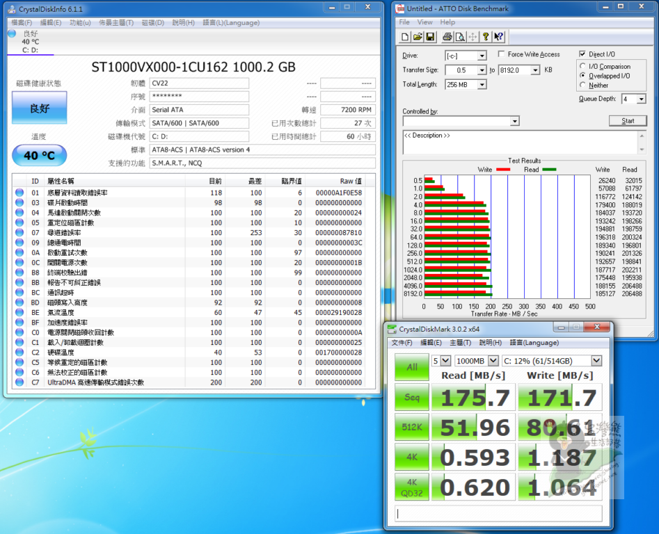 之前那一篇ST120HM000固態硬碟的測試圖這一篇就不重複放置,這樣只想了解SEAGATE Video 3.5 HDD ST1000VX000影音型硬碟組電腦的效能表現的網友就可以很方便閱讀與參考。但也為方便想要了解HDD與SSD組電腦的效能差異的網友比較閱讀的便利,在圖說上會將SSD數據抓過來方便比較。