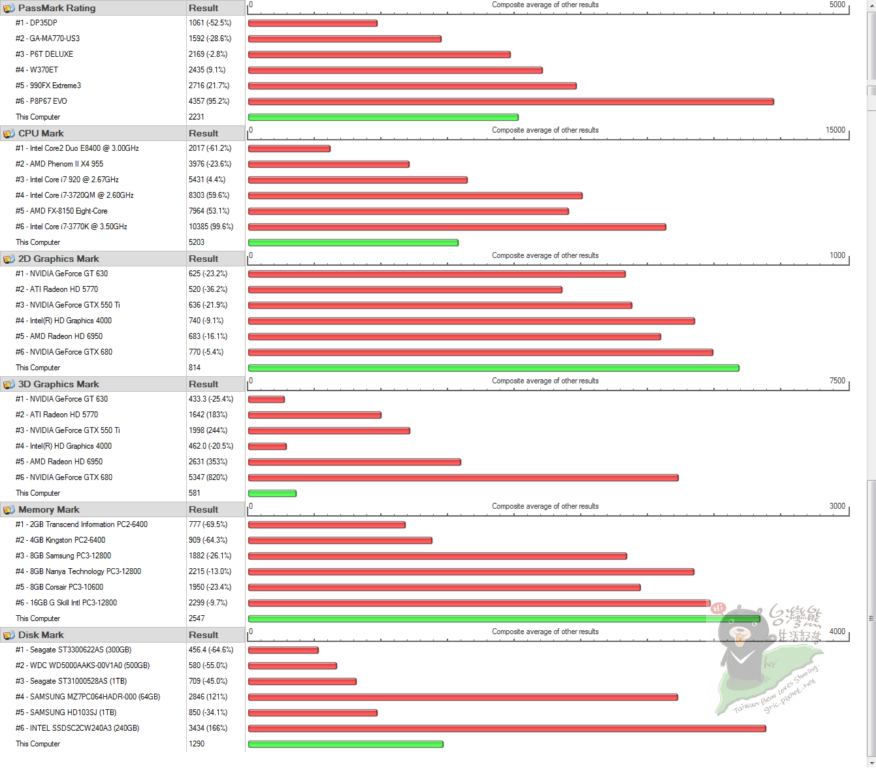 分三個階段實際測試與比較下來,可能真的顛覆了某些人的印象,包括台灣熊自己。而這也是台灣熊一直想要做的測試,這次剛好有機會這樣玩,也剛好印證以前在測試CPU的時候常講的一句話「單一零件的高速效能不一定能等比的呈現於整體效能!」,沒錯!以前CPU廠商宣稱效能比前一代由33提升到66,效能提升一倍,但是事實上你的時脈是提升一倍,但是整套系統不是只有CPU,所以整體的提升常常只是5%到一兩成而已。