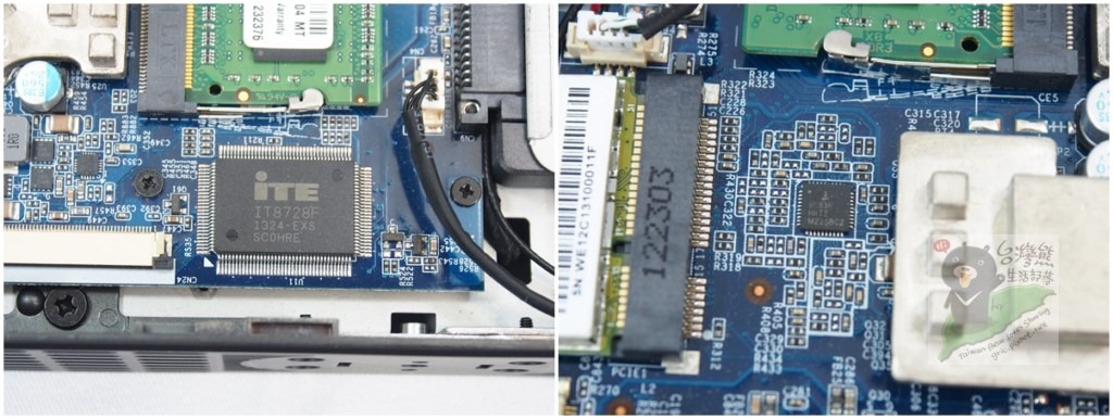 RAM BANK *4 、m-SATA介面 、iTE iT8772E、REALTEK ALC892 , 比較容易看到的晶片拍給大家看。