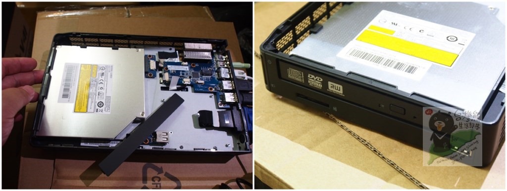 準備了筆電的記憶體與超薄型的DVD燒錄機,還有SSD來試裝一下!整體安裝起來感覺還不錯,機構位置設計正面肯定,唯一就是因為是塑膠機殼所以光碟機上方的橫桿稍軟,所以進片的時候記得要推到底!
