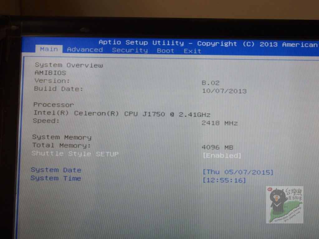 採用iTE IT8728F…也同一般桌機常見的用料包括固態電容,實際開機看一下BIOS畫面,台灣熊手上的測試機是較為少見的CPU型號J1750 簡單資訊也提供參考!正常出貨的XS35V4搭配的CPU是Intel® Celeron J1900。