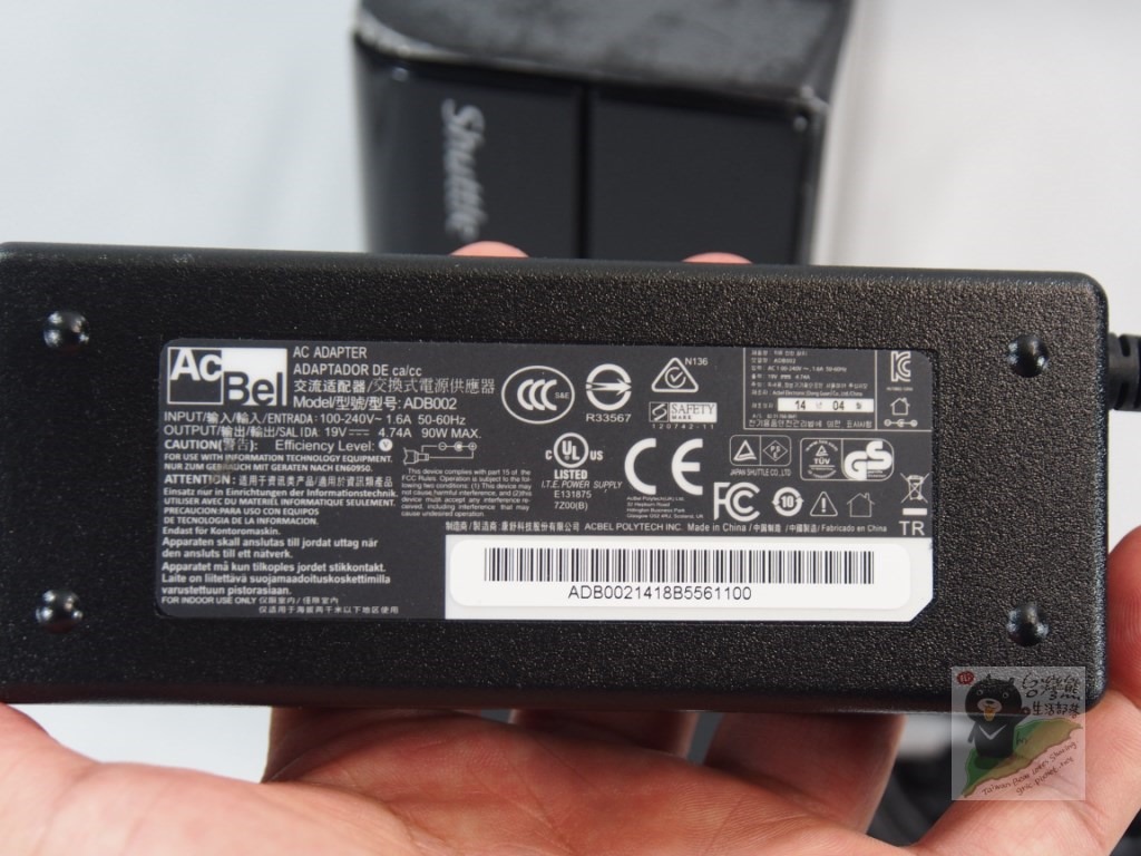 康舒AcBel的POWER(讚~),INPUT AC 100-240V 1.6A,OUTPUT DC 19V 4.74A,內正外負。