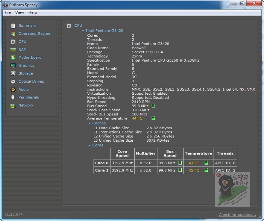 CPU Intel Pentium G3258 @ 3.20GHz 42 °C