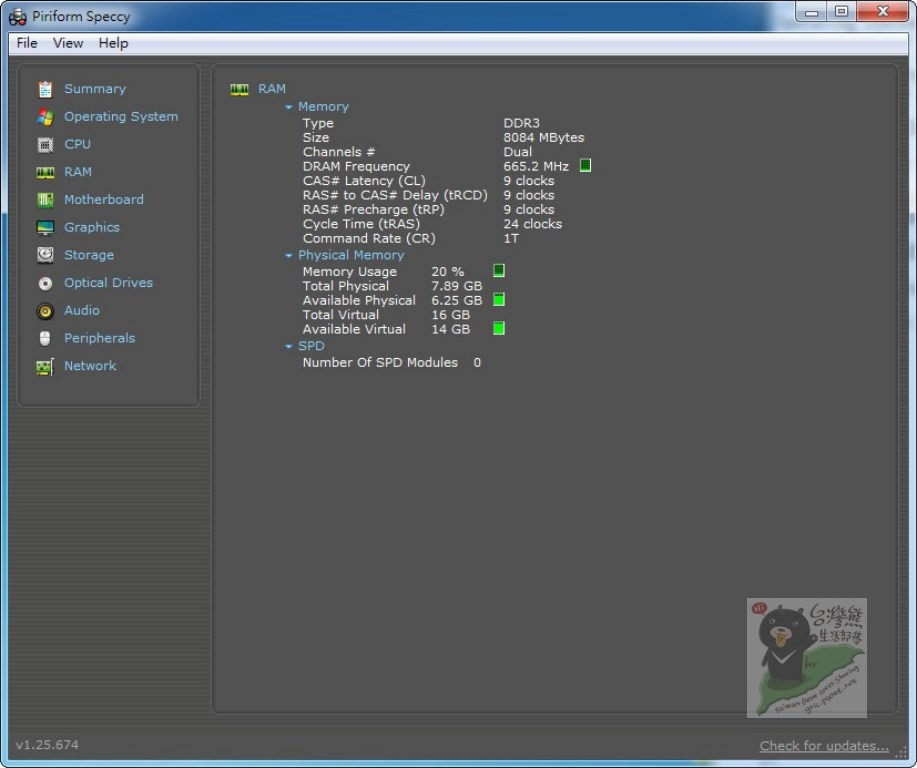 RAM 8.00GB Dual-Channel DDR3 @ 665MHz (9-9-9-24)