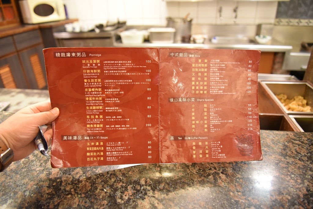 雖然來的時間晚,有些餐點應該都賣完了,但是還是可以看得出這家陳記狀元粥基本上就是台北的港式飲茶加上它特有的粥品做結合,還加上三寶、叉燒等港式飯品,也就是集港式茶、粥、飯於一身的港式餐廳,然後包裝在一間乾淨清爽外觀日式內裝台式風格建築物的概念。