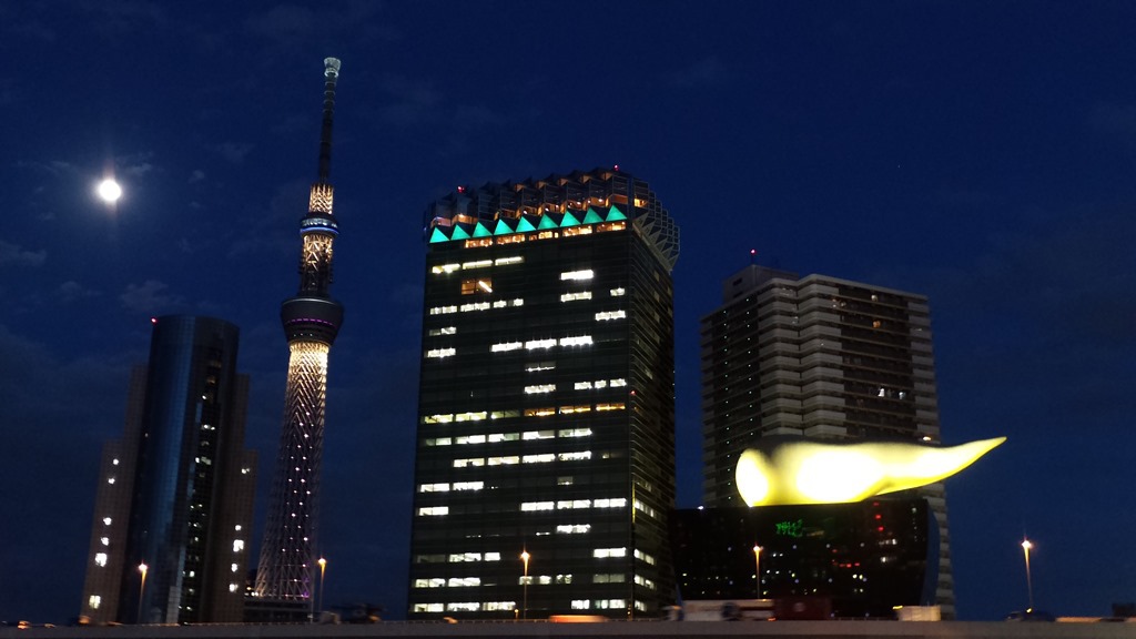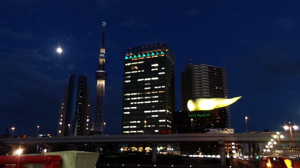 淺草拍晴空塔與火炬...巧遇月圓形成"拍三寶"的美圖...