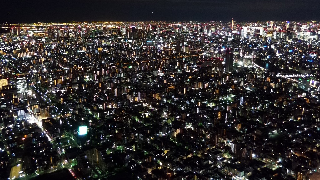 來到晴空塔當然要拍一下東京夜景跟大家分享,右前方有一根整支亮亮的,那是東京鐵塔...你找到了嗎?