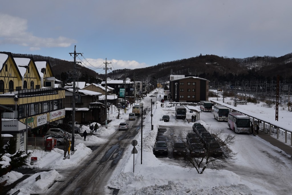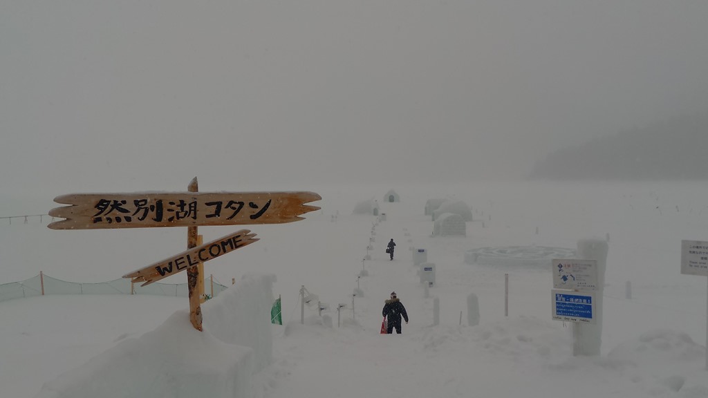 千辛萬苦到達的然別湖冰上村與冰上露天溫泉,天空飄著雪...還不小喔~~~