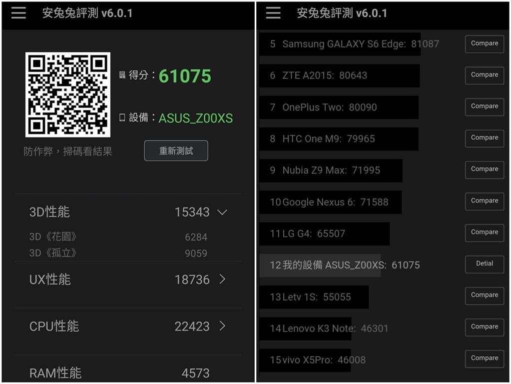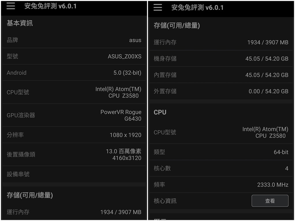 這支型號是ZX551ML-1A030TW 屬於4G/64GB版本的ZenFone Zoom,就是13,900元 intel Z3850 CPU的版本,不是旗艦規格的Z3590 128GB版,但是實測效能越過6萬(安兔兔)所以效能還是很不錯的!相信對多數網友已經非常夠用!