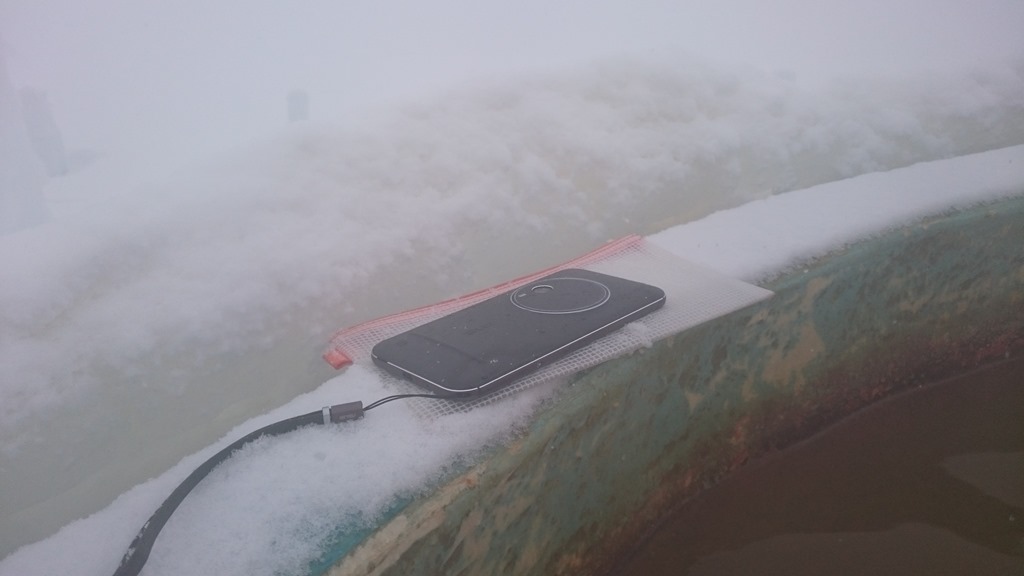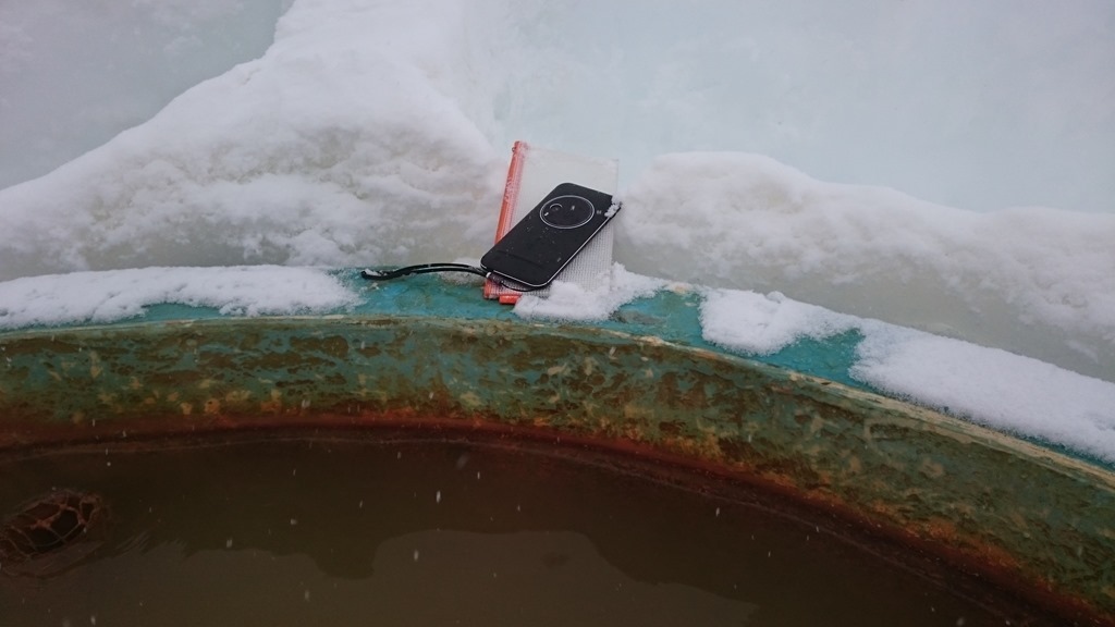 極寒與惡劣氣候下手機掛點是很正常的...在然別湖冰上溫泉拍照的時候其實環境真的很惡劣...好冷、天空中還繼續飄著雪...然後還有冷風呼呼吹...XD